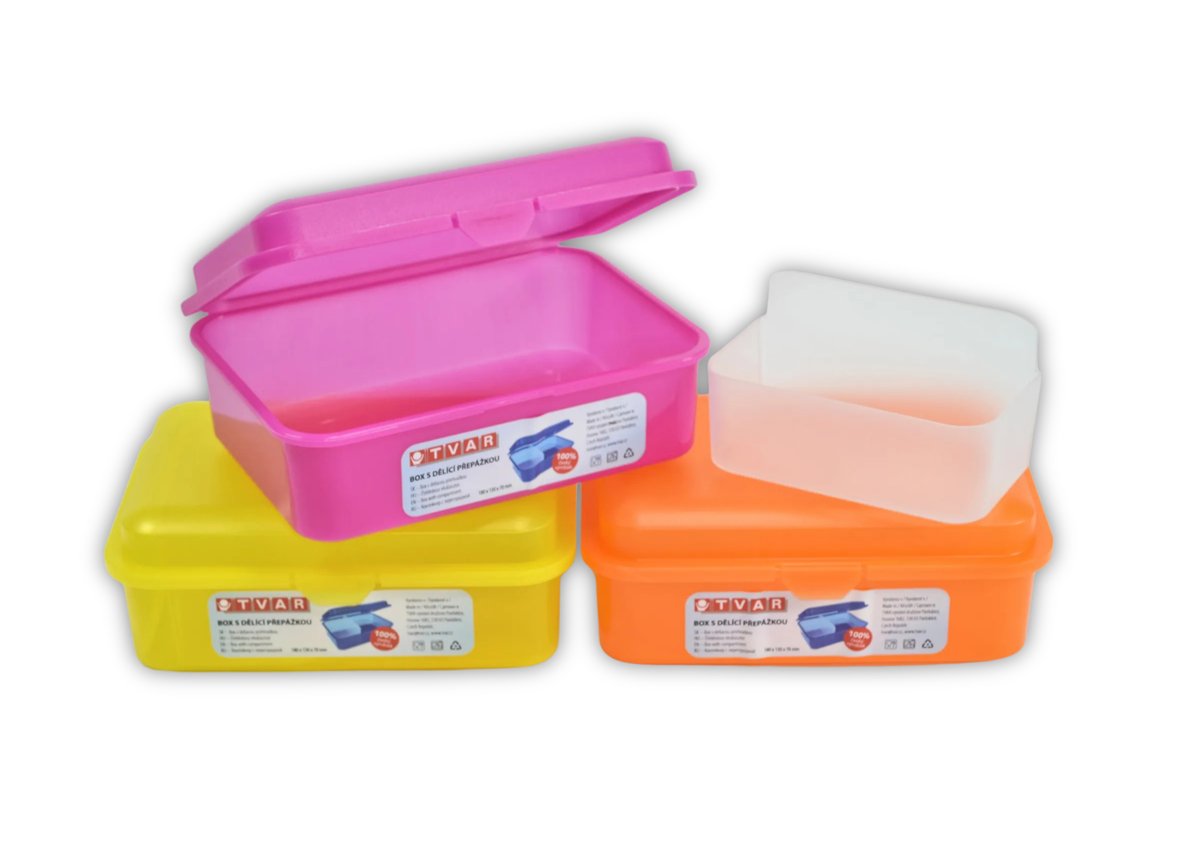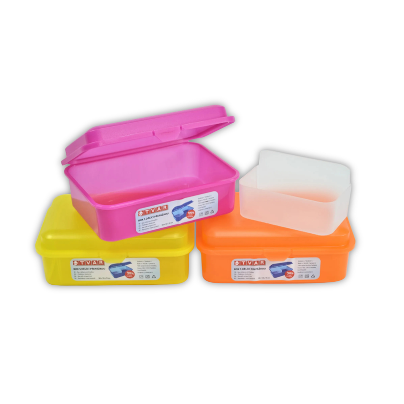 Box obsahuje vyjímatelnou přihrádku, která umožňuje flexibilní uspořádání prostoru podle aktuální potřeby. Můžete tak oddělit například ovoce, zeleninu, pečivo nebo sladkou svačinu a udržet jídlo déle čerstvé.
