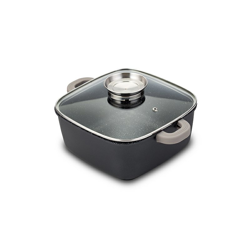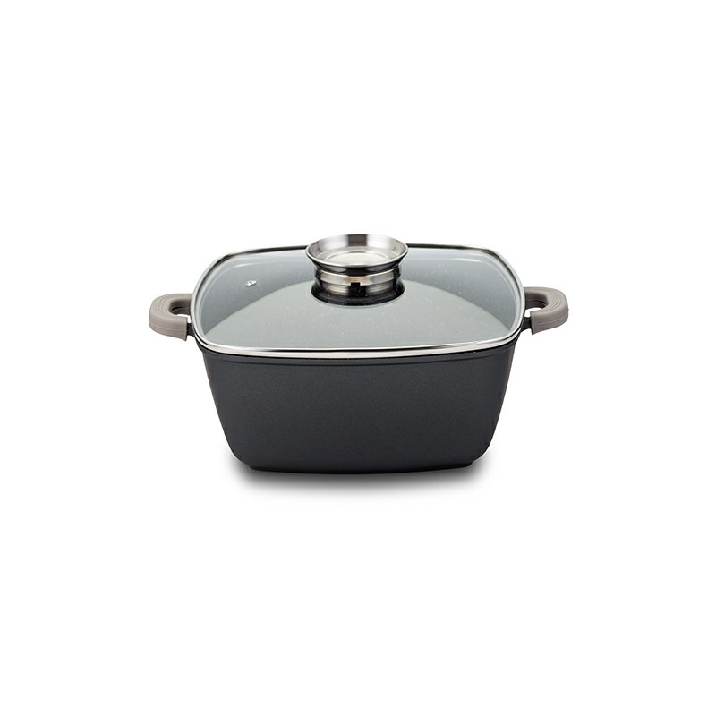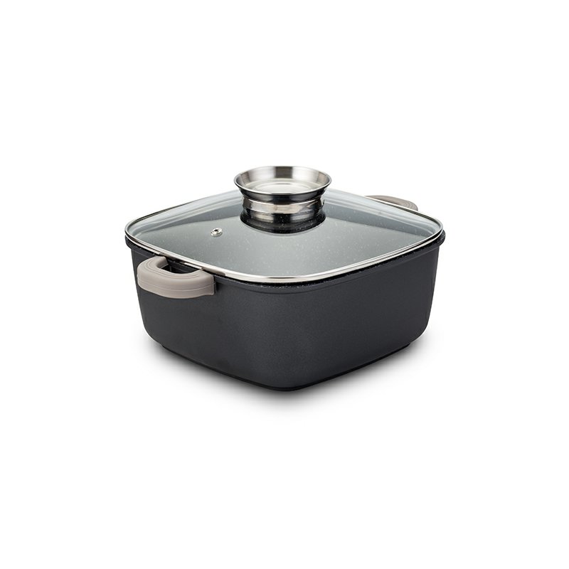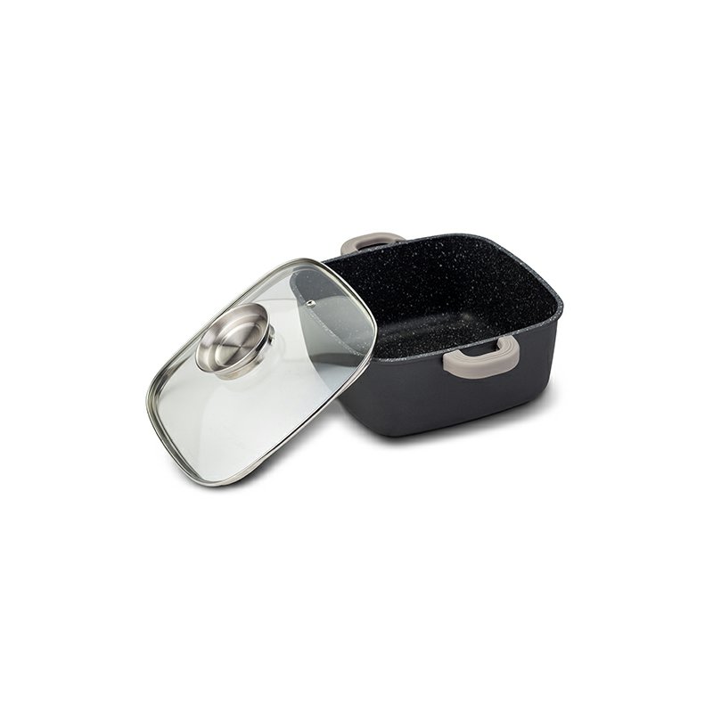 Objevte mimořádně odolný čtvercový pekáč Nava Funtzio 24 cm, vyrobený z tlakově litého hliníku a vybavený 5vrstvým nepřilnavým kamenným povlakem. Tento povrch napodobuje přirozené vlastnosti přírodního kamene – poskytuje výbornou odolnost, šetrné zdravé vaření a dlouhou životnost i při každodenním používání.