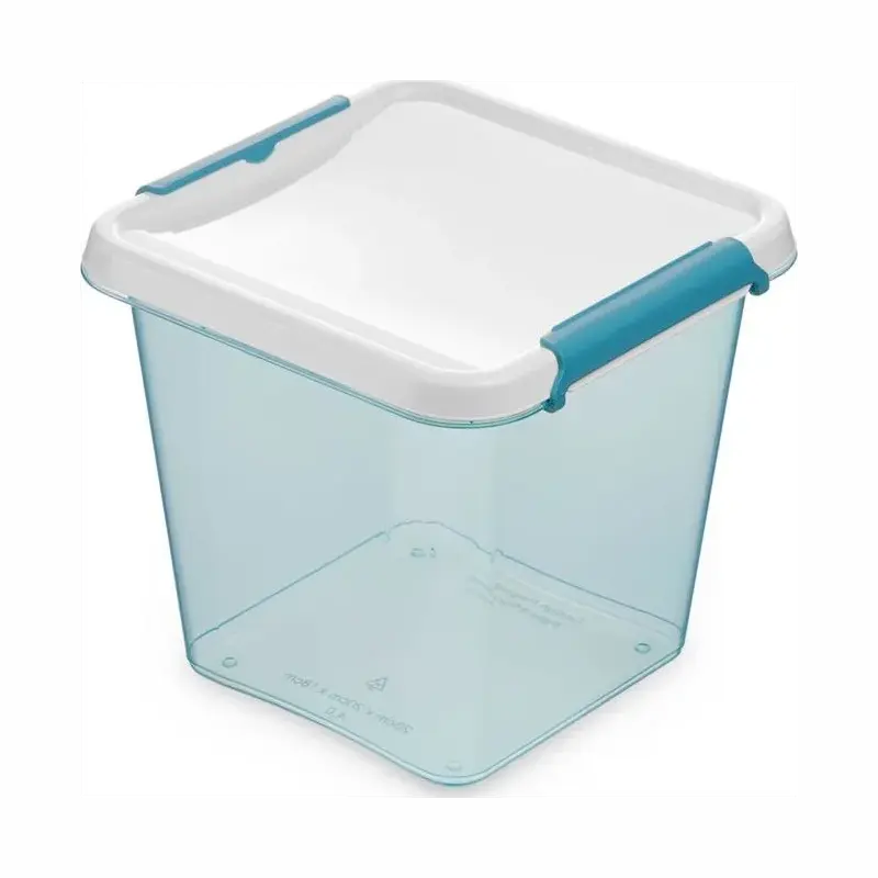 Nádoba je vyrobena z kvalitního plastu (PP) bez BPA, který je bezpečný pro kontakt s potravinami. Průhledné stěny umožňují rychle vidět obsah bez nutnosti otevření, zatímco bílé víko s modrými klipy zajišťuje bezpečné uzavření a udržuje potraviny déle čerstvé.