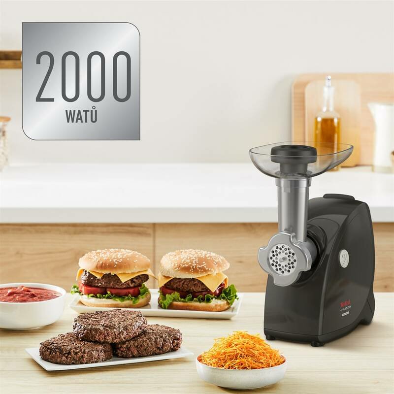 S elektrickým mlýnkem na maso Tefal NE477838 HV4 Successor připravíte domácí mleté maso, uzeniny, kebbe i zeleninové směsi během okamžiku. Tento všestranný pomocník s výkonem 2 000 W a rychlostí 2 300 ot./min. zvládne umlít až 2,3 kg masa za minutu.