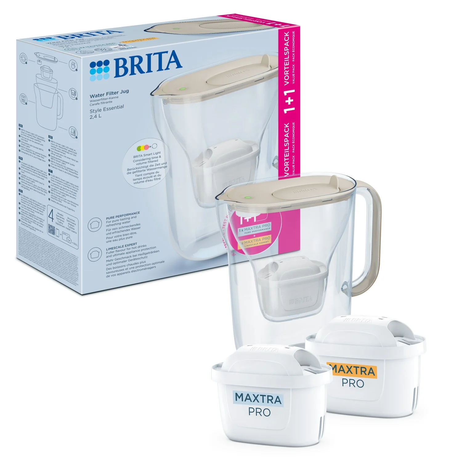 Filtrační konvice Brita Style Essential 2,4 l v pískovém provedení přináší moderní design, snadné používání a chytré řešení „Try Me“ – balení obsahuje 2 různé filtry, abyste si mohli vybrat ten ideální.