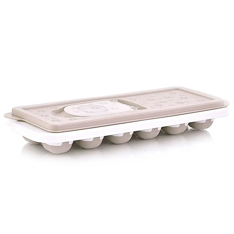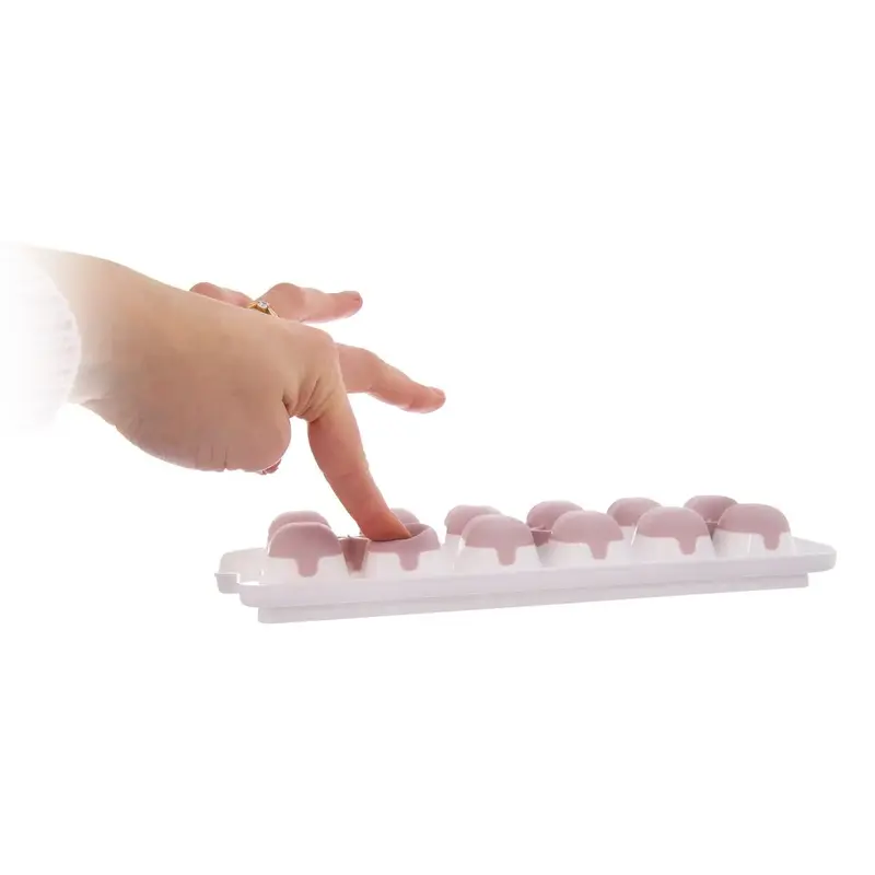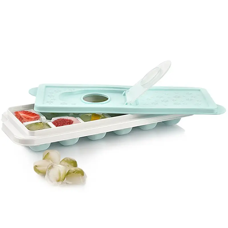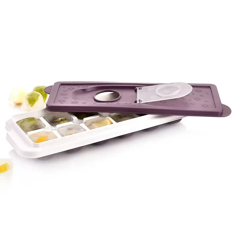 Praktická forma na led s víčkem umožňuje snadnou výrobu až 12 kostek ledu. Díky silikonovému dnu kostky jednoduše vyjmete a víčko zajistí pohodlné plnění i bezpečné uložení v mrazničce bez rozlití.