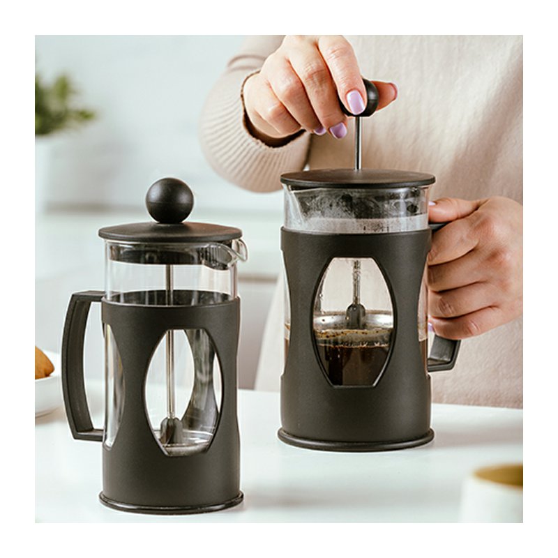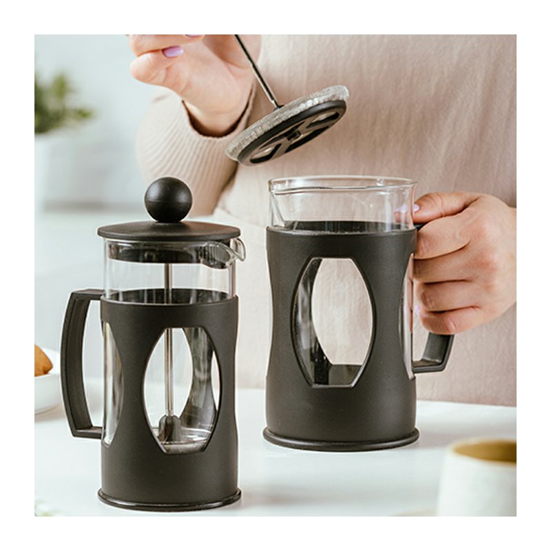 Konvice je vyrobena z tepelně odolného skla, doplněná plastovým pláštěm, který chrání před popálením. Píst a filtr z nerezové oceli 18/8 zajišťují dlouhou životnost a efektivní filtraci.