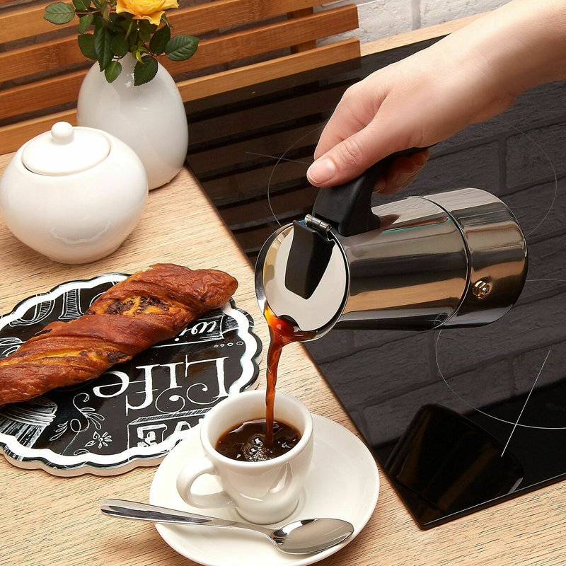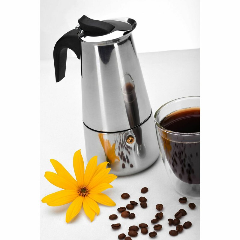 Kávovar - moka konvička Tadar Moderno z nerezové oceli je spolehlivý pomocník pro přípravu silného a aromatického espressa. Díky robustní konstrukci v italském stylu si vychutnáte plnou chuť kávových zrn, ať už preferujete klasické espresso nebo moku.