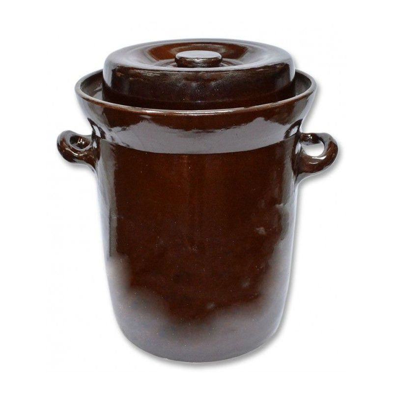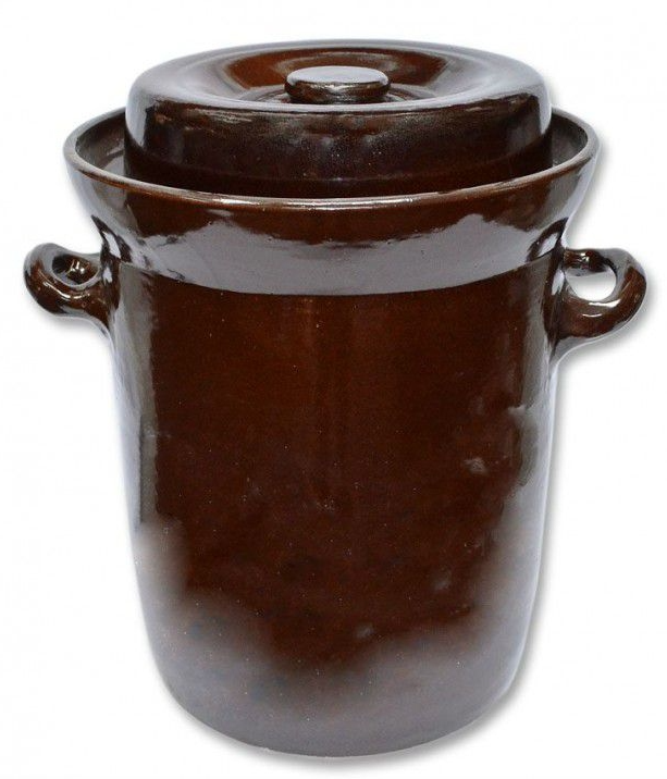 Keramický zelák 4 l s víkem v glazuře. Tradiční nádoba na nakládání zelí, okurek i ovoce. Výška 20 cm, průměr 17 cm.