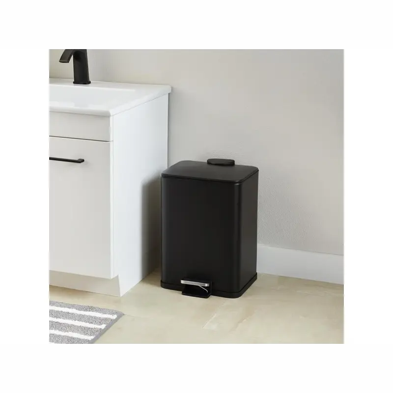 Minimalistický design a černá barva umožňují snadné začlenění do různých interiérů, takže koš nejen plní svou funkci, ale také esteticky doplňuje prostor.