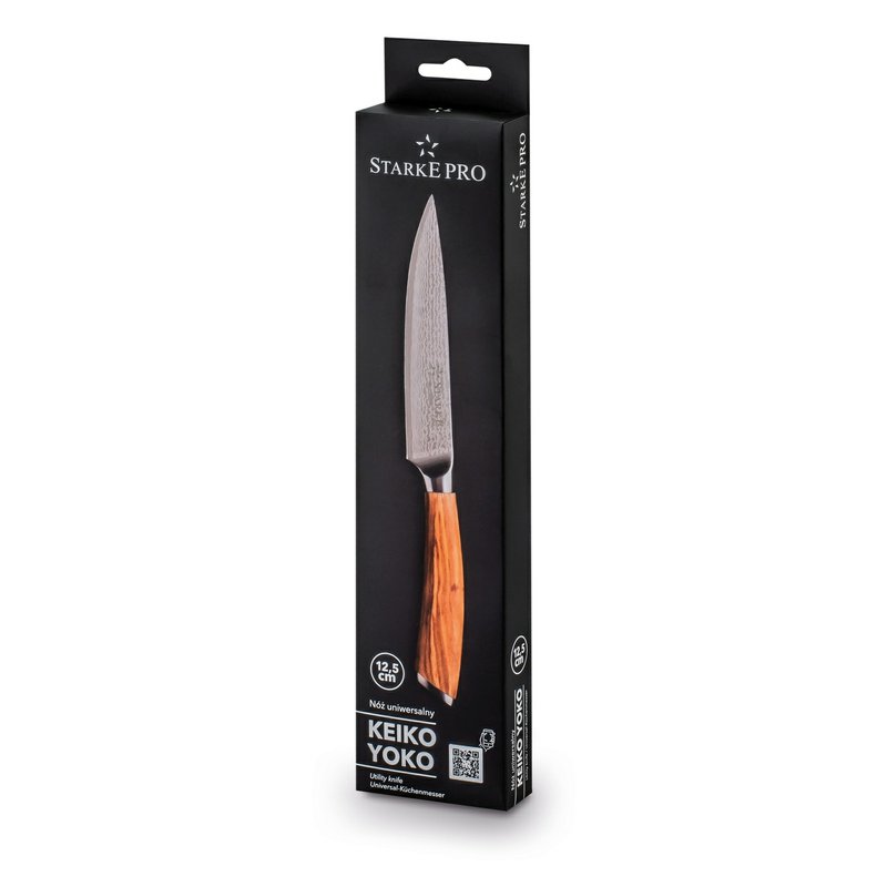 Univerzální kuchyňský nůž Starke Pro Keiko Yoko 12,5 cm představuje spojení elegantního designu, precizního zpracování a maximální funkčnosti. Tento nůž je ideálním pomocníkem pro každodenní krájení, sekání i porcování.