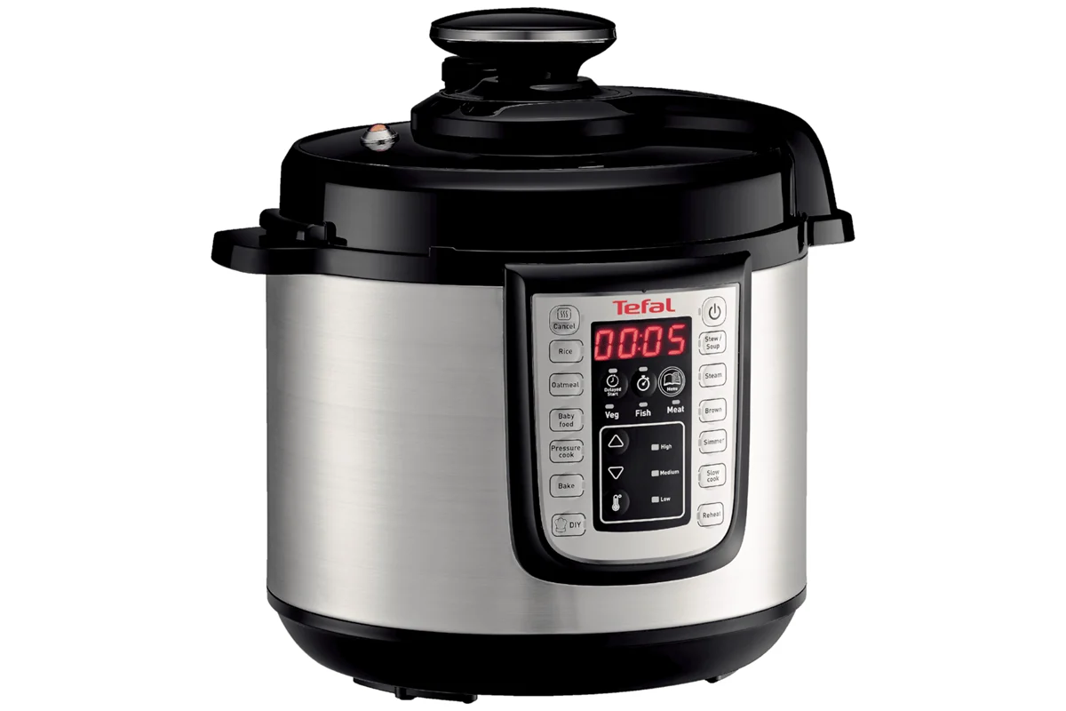Multifunkční tlakový elektrický hrnec Tefal One Pot CY505EE0 je moderní automatický pomocník, který výrazně zjednodušuje a urychluje vaření. Nabízí až 25 automatických programů, díky kterým snadno připravíte guláš, rýži, maso, polévky, dětské kaše i zapékané pokrmy. Hrnec zvládne tlakové vaření, klasické vaření, vaření v páře i pomalé vaření, takže dokáže nahradit několik kuchyňských spotřebičů najednou.