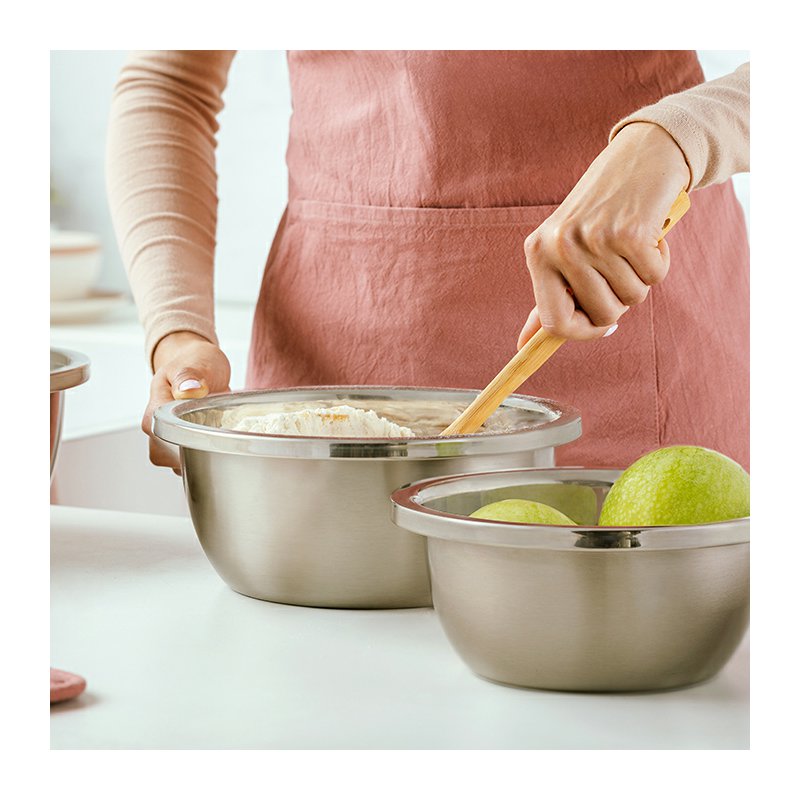 Mísa je vyrobena z vysoce kvalitní nerezové oceli 18/8 (SS304), která je zdravotně nezávadná, odolná a vhodná pro kontakt s potravinami. Neobsahuje BPA, PVC, olovo ani ftaláty, takže je bezpečnou volbou pro každou kuchyni.