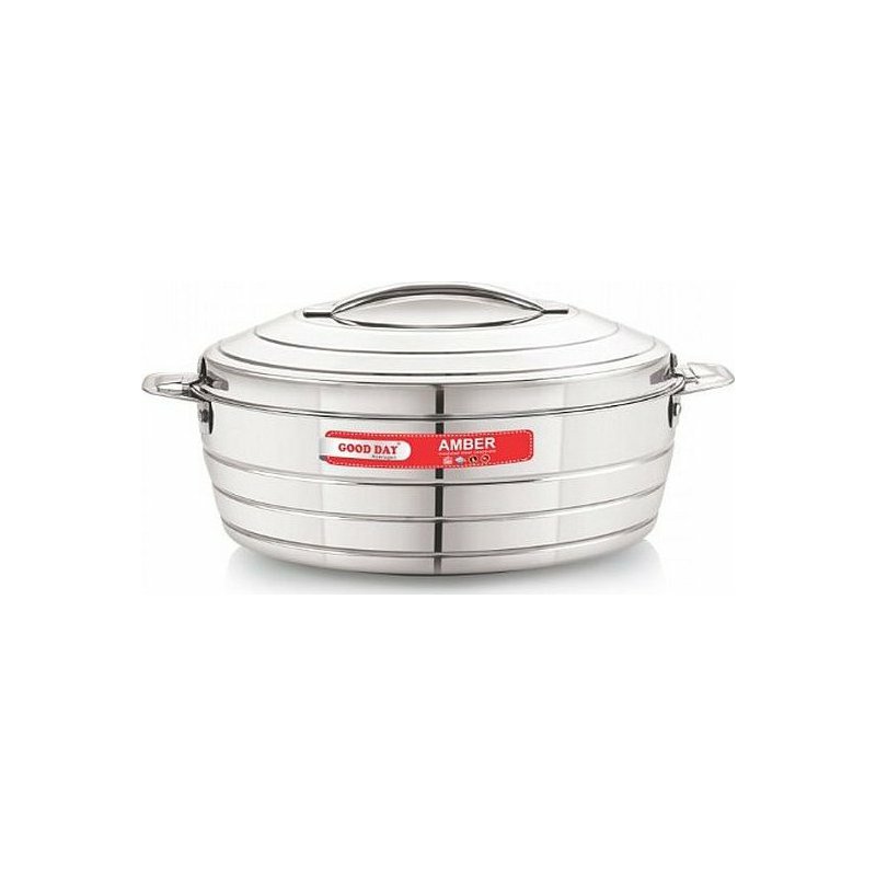 Praktická termomísa Amber o objemu 2,5 litru je ideální pomocník pro uchování teplých i studených pokrmů. Díky dvojité stěně z nerezavějící oceli udrží jídlo déle v požadované teplotě – ať už jde o polévku, přílohu, salát nebo dezert.