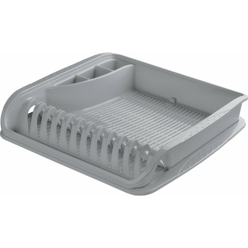 Odkapávač na nádobí 39,5 × 39,5 × 8 cm, severská šedá je praktický pomocník do každé kuchyně. Slouží k pohodlnému odkládání umytého nádobí. Odkapávač je rozdělen na samostatné sekce pro příbory, talíře a ostatní kuchyňské potřeby. Součástí je také plastová podložka, která zachytává odkapávající vodu a udržuje vaši kuchyňskou linku čistou.