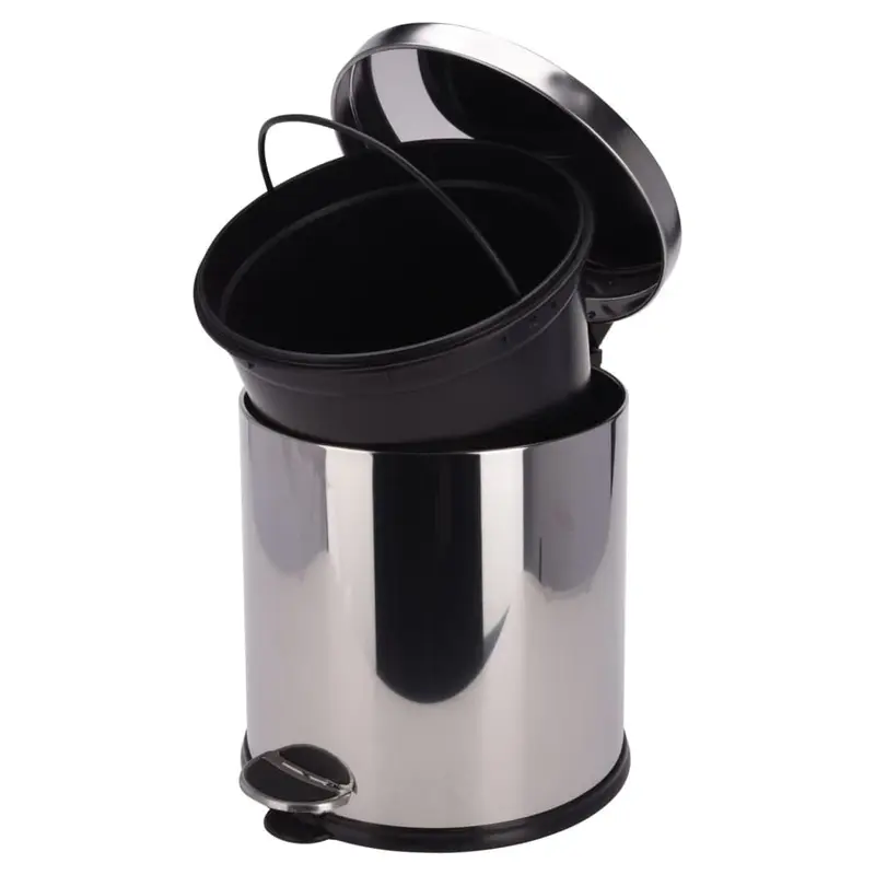 Nerezový odpadkový koš s pedálovým otevíráním a vyjímatelným plastovým košem.
