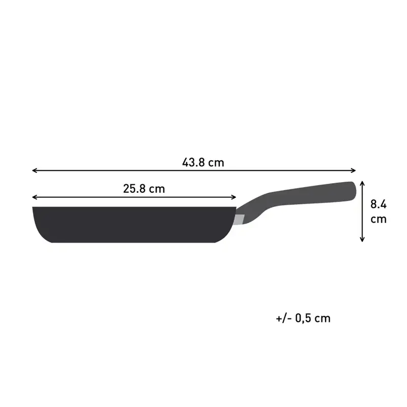 Pánev vyniká hlubším univerzálním tvarem, který umožňuje přípravu různých pokrmů – od rychlých snídaní až po vydatnější jídla. Speciální indukční dno zajišťuje rychlé a rovnoměrné zahřívání na všech typech sporáků, včetně indukce.