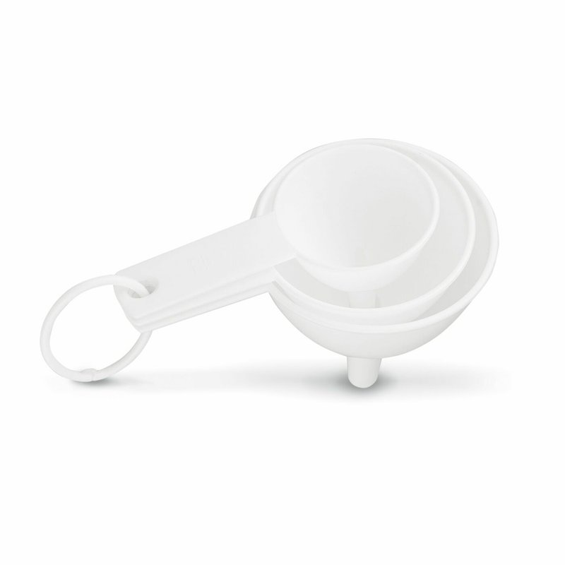 Sada plastových trychtýřů Tadar vám usnadní každodenní práci v kuchyni – od nalévání horkých nápojů do termosky až po přípravu domácích sirupů a šťáv během ovocné sezóny. Každý trychtýř má jiný průměr (6,5 cm, 8,5 cm, 9,5 cm), takže si vždy vyberete ten správný pro konkrétní nádobu.