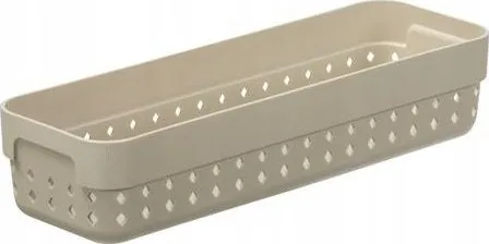 Košík SEOUL M organizér 24 × 8 × 5 cm – matná béžová je praktický plastový organizér, který pomůže přehledně uspořádat drobnosti v domácnosti, kanceláři i dílně. Díky kompaktním rozměrům je ideální do zásuvek, polic nebo skříněk, kde pomáhá udržet pořádek mezi menšími předměty.