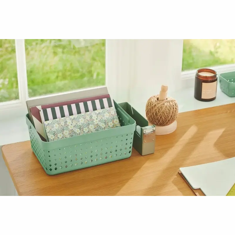 Košík SEOUL S 26 × 18 × 12,6 cm – v zelené barvě je praktický plastový úložný košík, který pomůže přehledně uspořádat drobnosti v domácnosti, kanceláři i dílně. Díky svým rozměrům nabízí dostatek prostoru pro uložení různých předmětů a zároveň se snadno vejde do polic, skříní nebo na pracovní plochu.