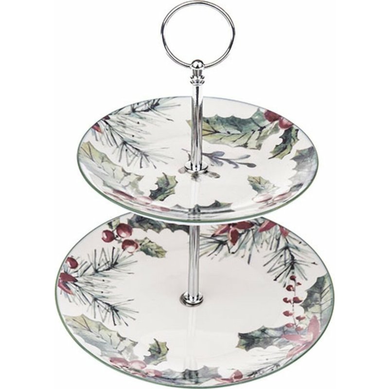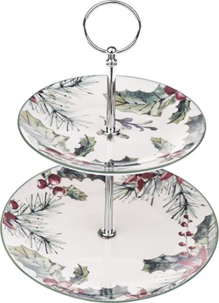 Vytvořte kouzelnou vánoční tabuli sporcelánovou etažérkou na 2 patra. Spodní talíř má průměr 19 cm, horní 15 cm, celková výška umožňuje elegantní prezentaci cukroví, mini dortíků či vánočních sušenek.