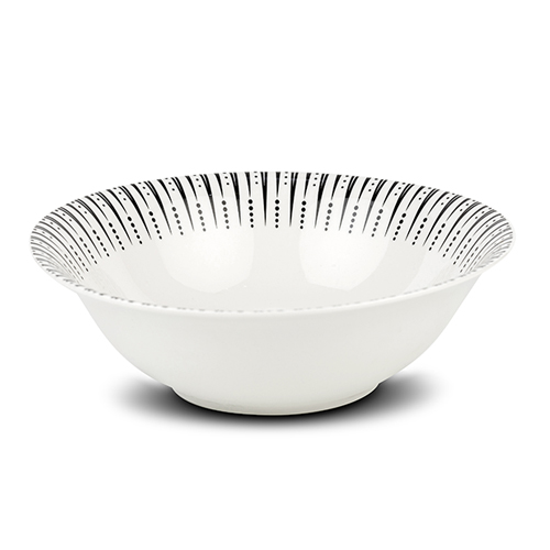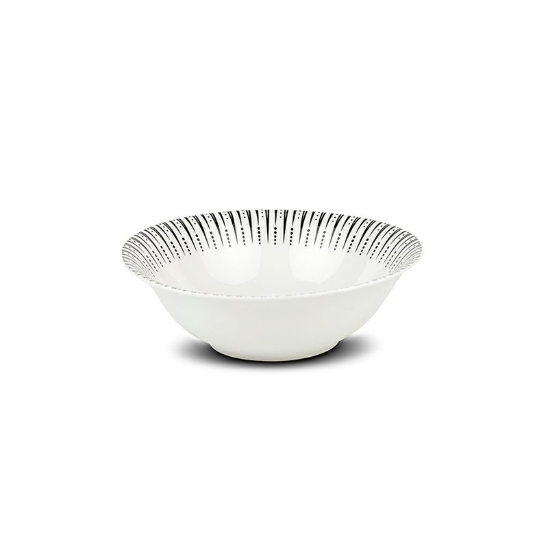 Porcelánová salátová mísa z kolekce NAVA Iris o průměru 23 cm a objemu 1,1 l je ideální volbou pro servírování čerstvých salátů, příloh i jiných pokrmů. Díky elegantnímu černému vzoru se stane nejen praktickým, ale i dekorativním prvkem na vašem stole – ať už při každodenním stolování, nebo během slavnostních příležitostí.