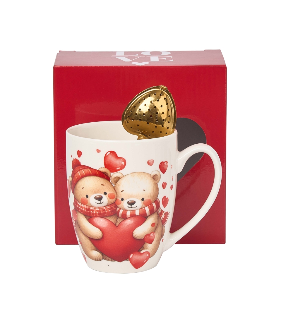 Klasický porcelánový hrnek s čajítkem ve tvaru srdce potěší všechny milovníky čaje a roztomilých motivů, vhodné i jako dárek na Valentýna.