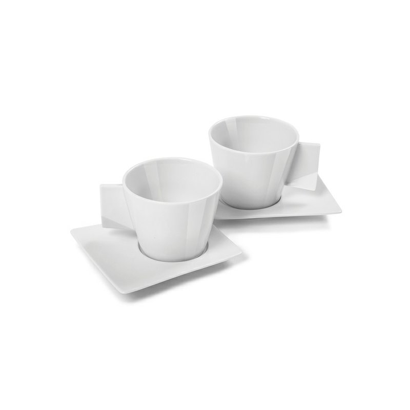Šálek má dostatečnou výšku pro krásně našlehanou mléčnou pěnu a dobře padne do ruky. Podšálek s výraznějším profilem nabízí dostatek prostoru pro lžičku nebo drobné pohoštění a zároveň podtrhuje moderní, elegantní vzhled celé soupravy.