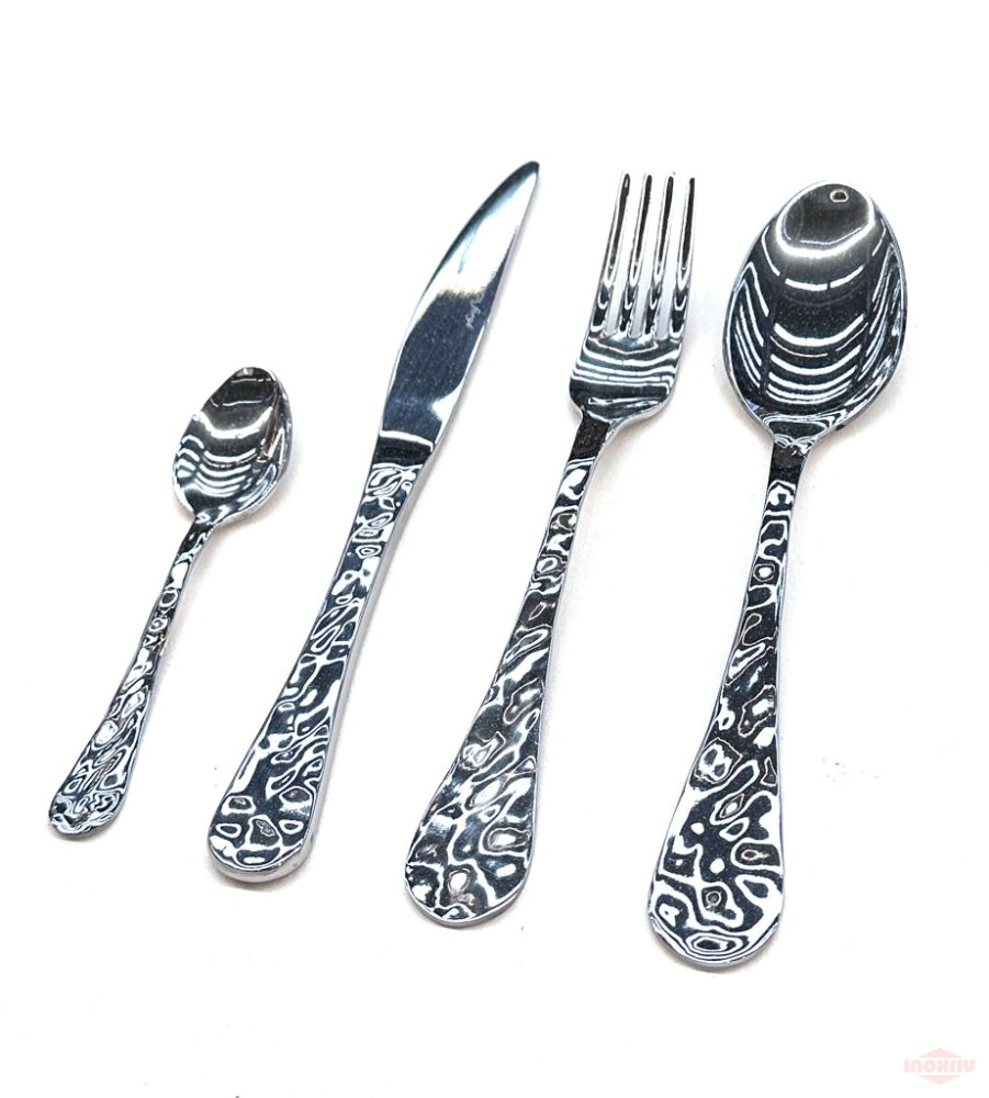 Elegantní sada příborů WAVE 24 ks zaujme svým originálním tepaným designem, který dodává stolování jedinečný a stylový vzhled. Jemná struktura povrchu v kombinaci s leštěným provedením vytváří atraktivní efekt vhodný pro moderní i elegantní interiéry.