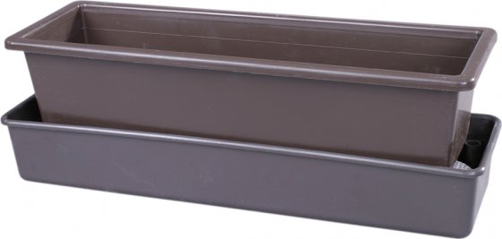 Samozavlažovací truhlík hnědý 50 cm s knotovým systémem zavlažování. Ideální pro pěstování balkonových květin a bylinek.