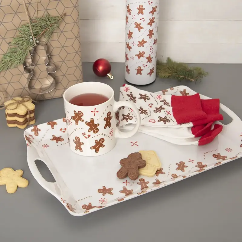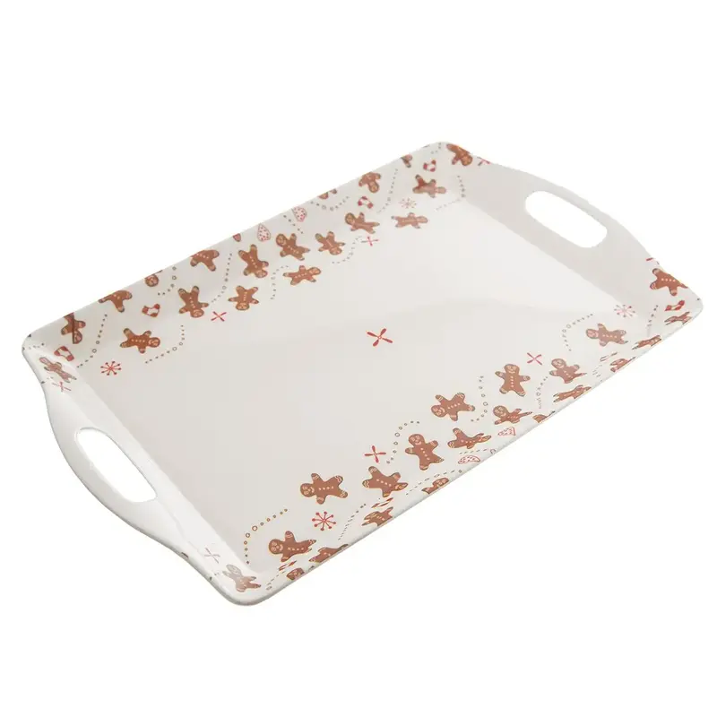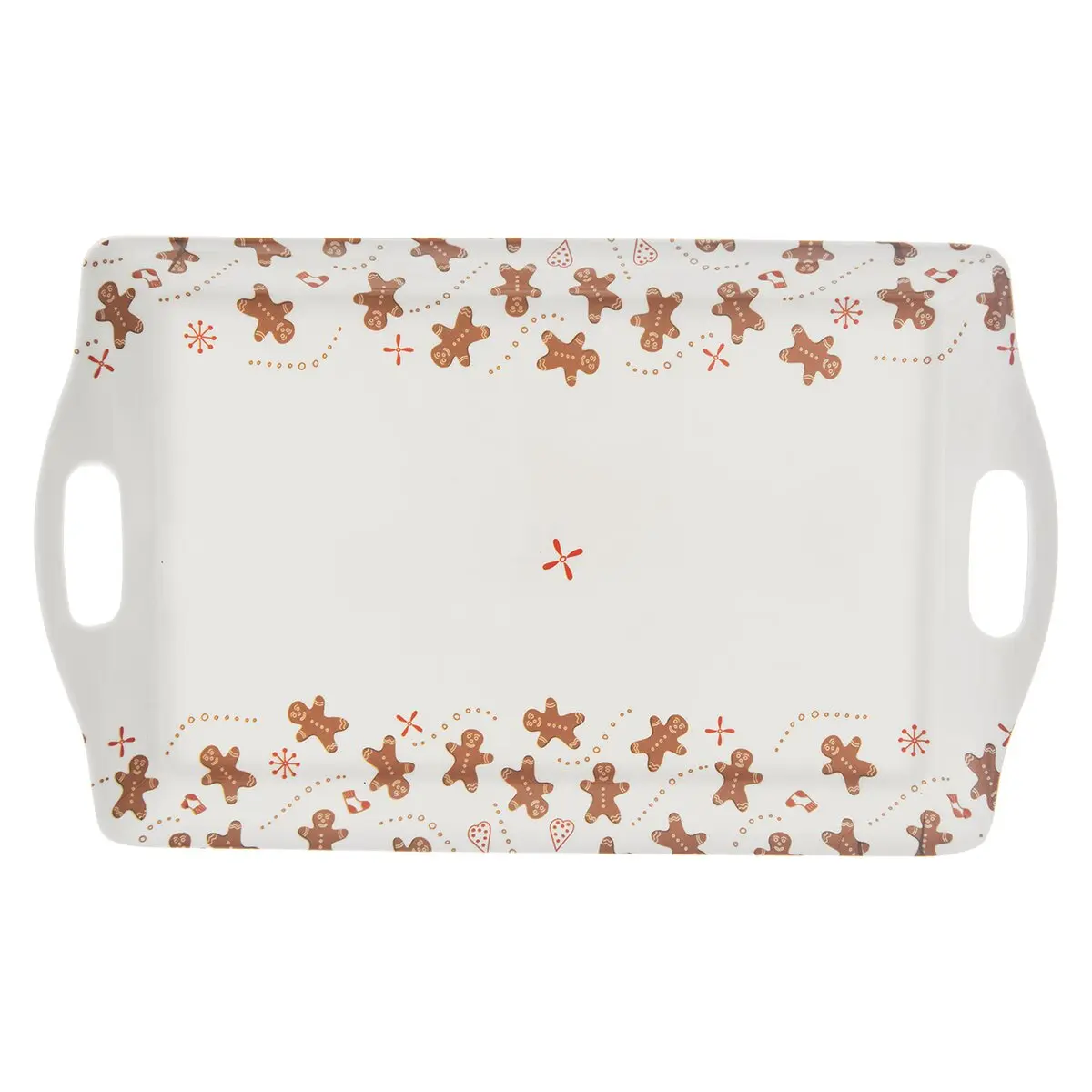 Servírovací tác PERNÍČEK 37x22,7 cm je vyroben z odolného melaminu a zdoben jemným vánočním motivem s panem Perníčkem – roztomilým nezbedou, který doplňuje celou kolekci Perníček od Orion designérů.