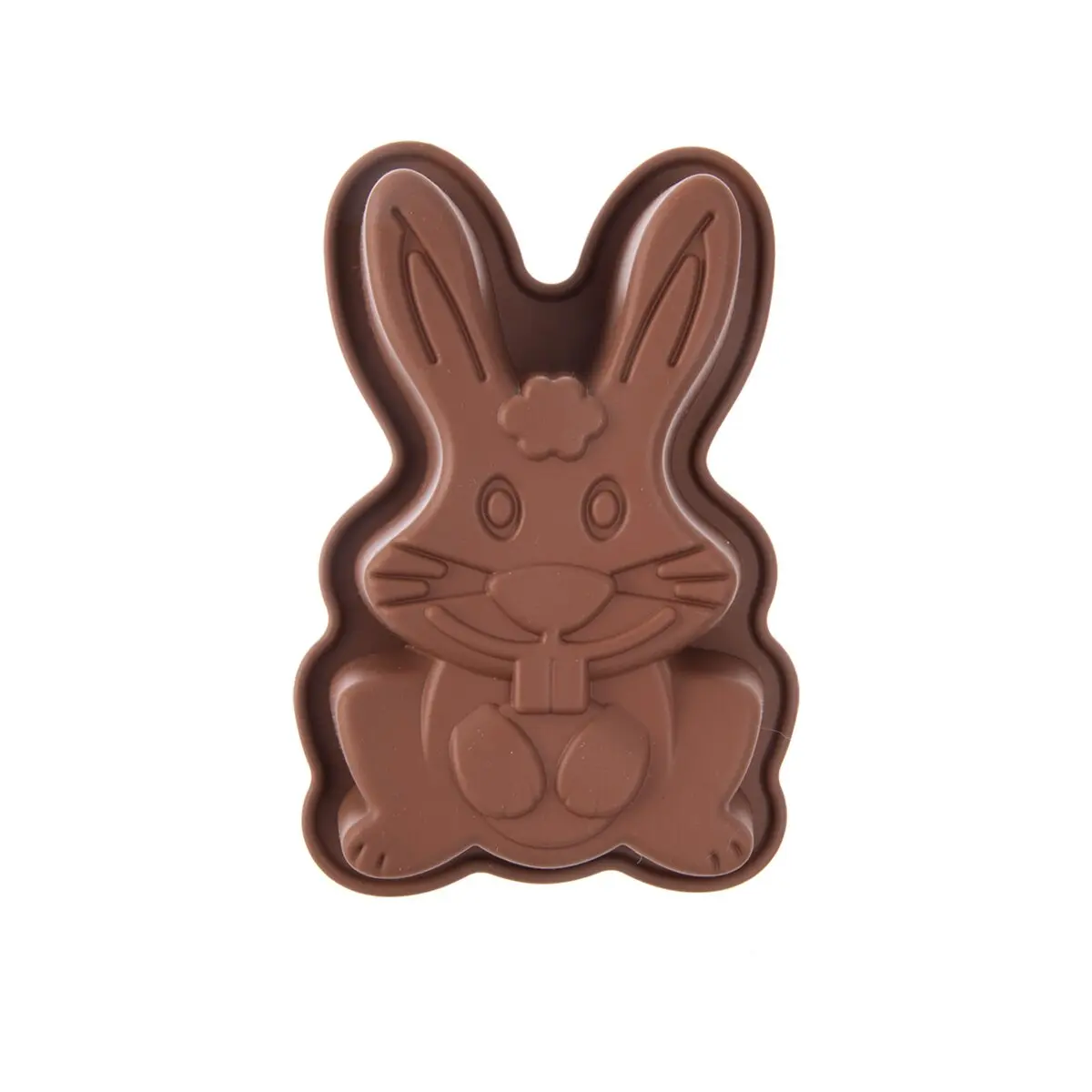 Nepřilnavá hnědá velikonoční silikonová forma pro rychlé a stejnoměrné pečení 5 ks sušenek nebo k výrobě originální čokolády.