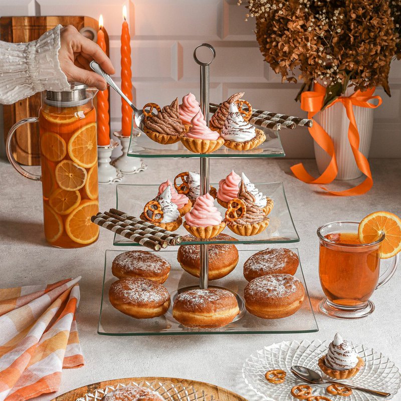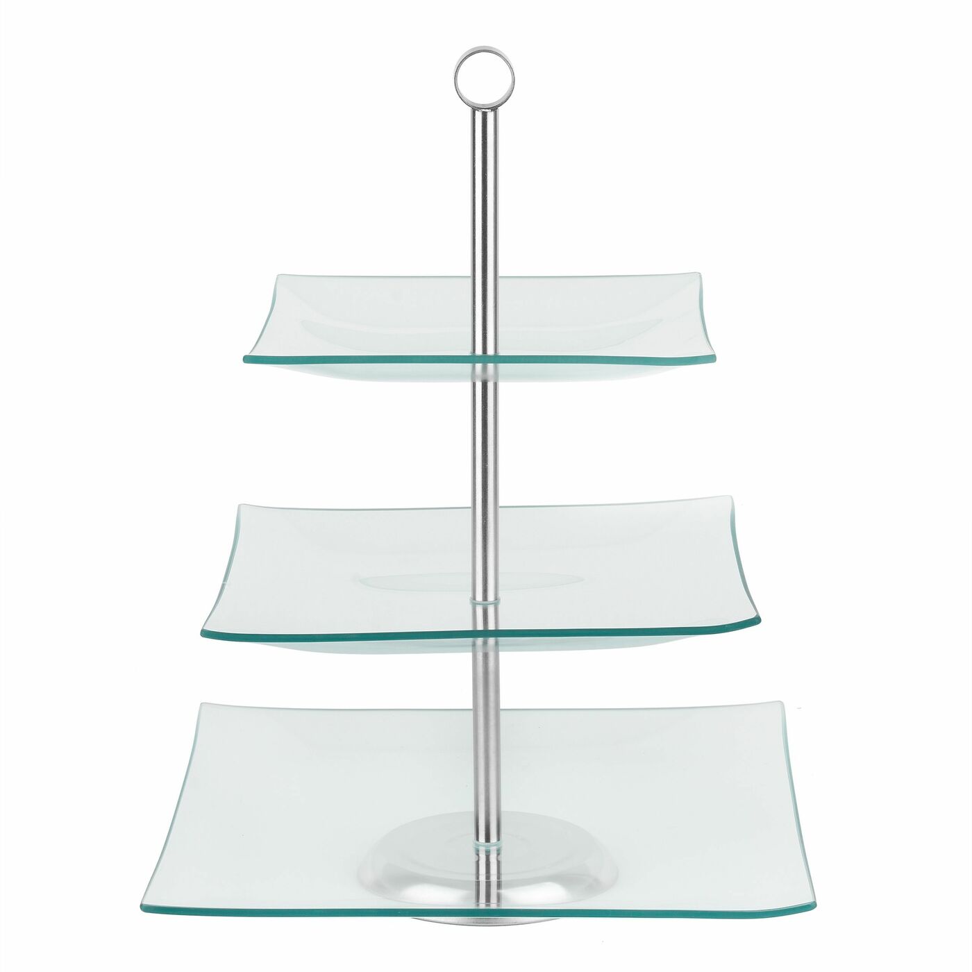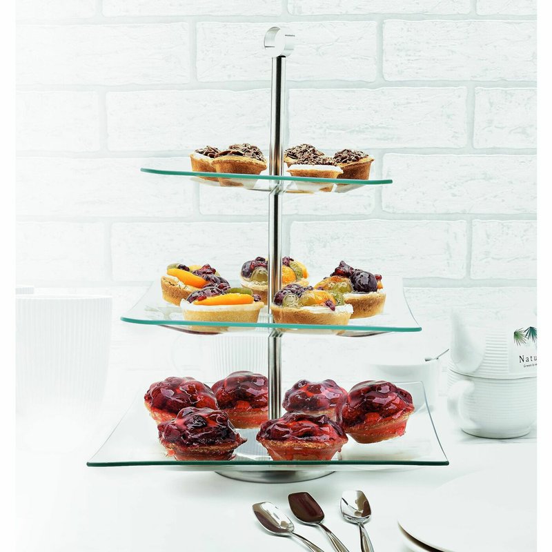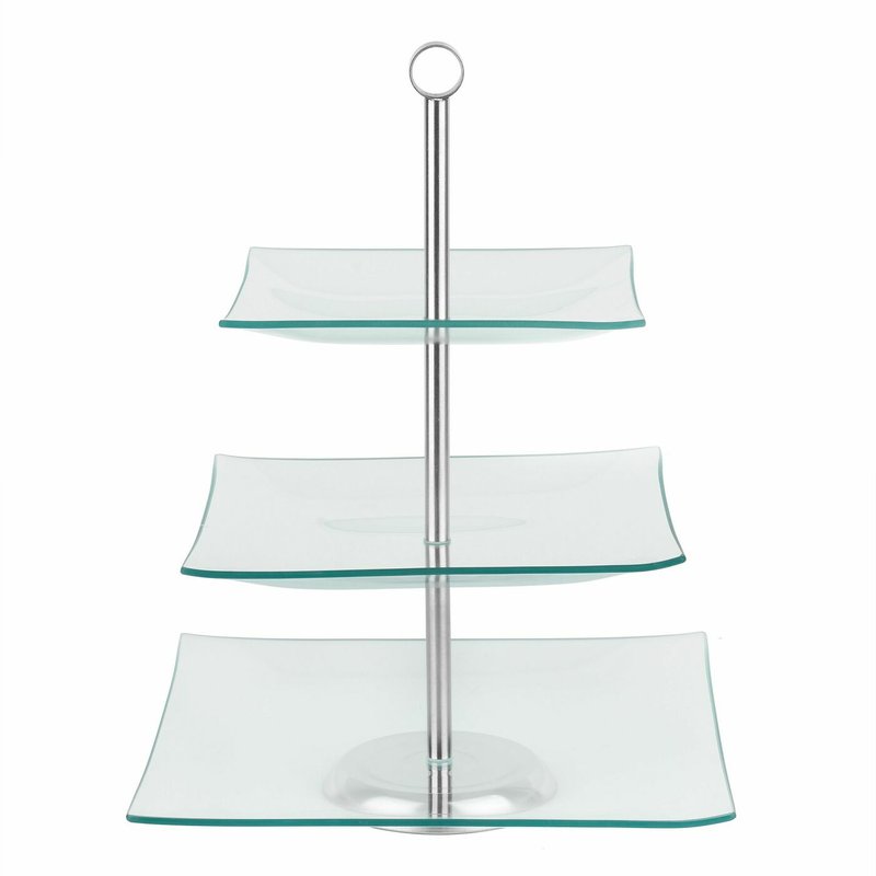 Tadar Veronika třípatrová skleněná etažerka 20/25/29 cm je elegantní a praktický doplněk pro servírování dortů, zákusků, ovoce nebo sladkostí. Díky čtvercovému tvaru a třípatrové konstrukci ušetříte místo na stole a zároveň efektně vystavíte své dezerty.