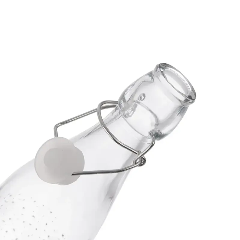 Skleněná láhev 250 ml s patentním uzávěrem – ideální pro skladování domácích sirupů, šťáv, olejů nebo likérů. Vyrobená z odolného čirého skla, vhodná pro kontakt s potravinami.