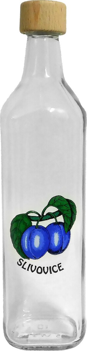 Elegantní dárková láhev o objemu 700 ml s motivem švestek a dřevěným šroubovacím uzávěrem. Ideální na domácí slivovici, likéry, sirupy nebo jako stylový dárek.
