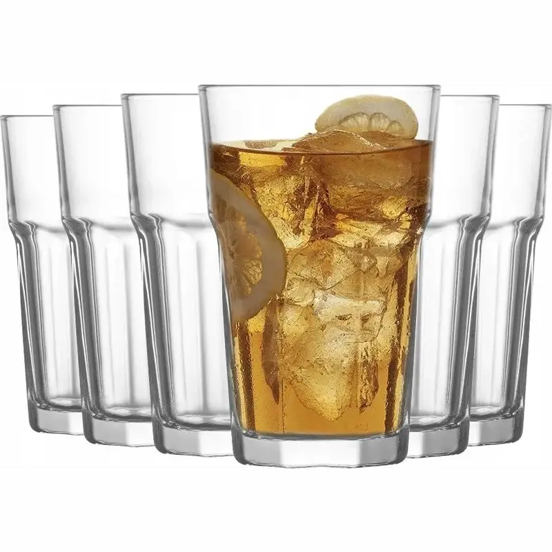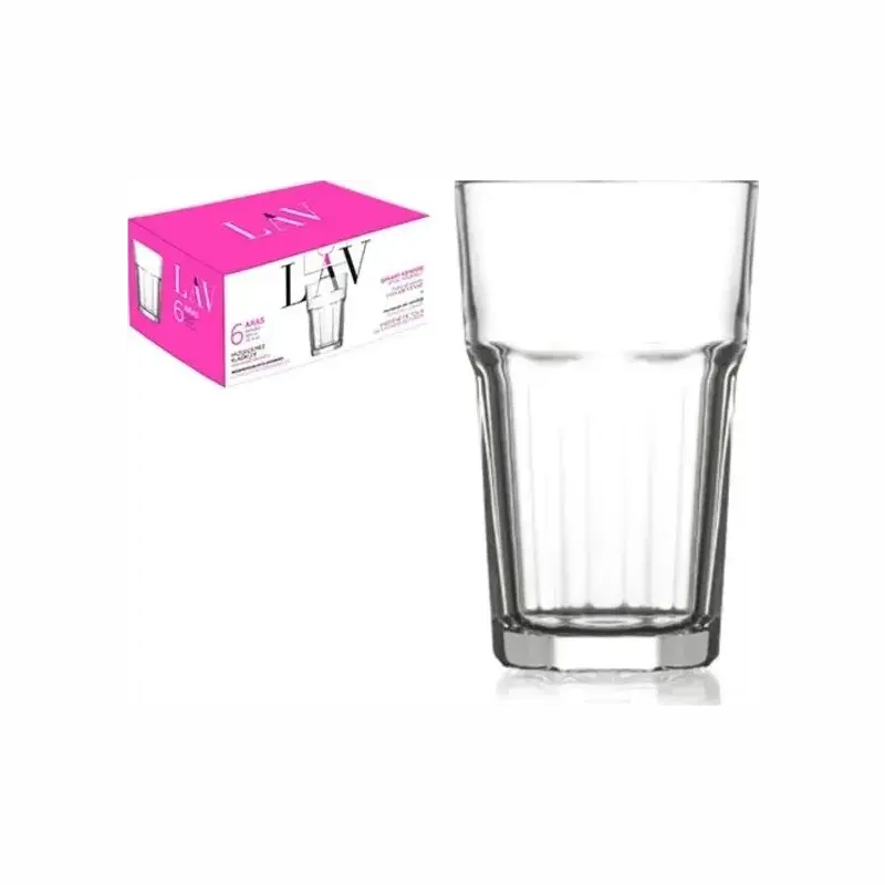 Sklenice LAV Aras 365 ml v sadě 6 ks jsou ideální pro long drinky, džusy i limonády. Odolné tvrzené sklo a elegantní design se hodí pro domácnost i gastro provozy.