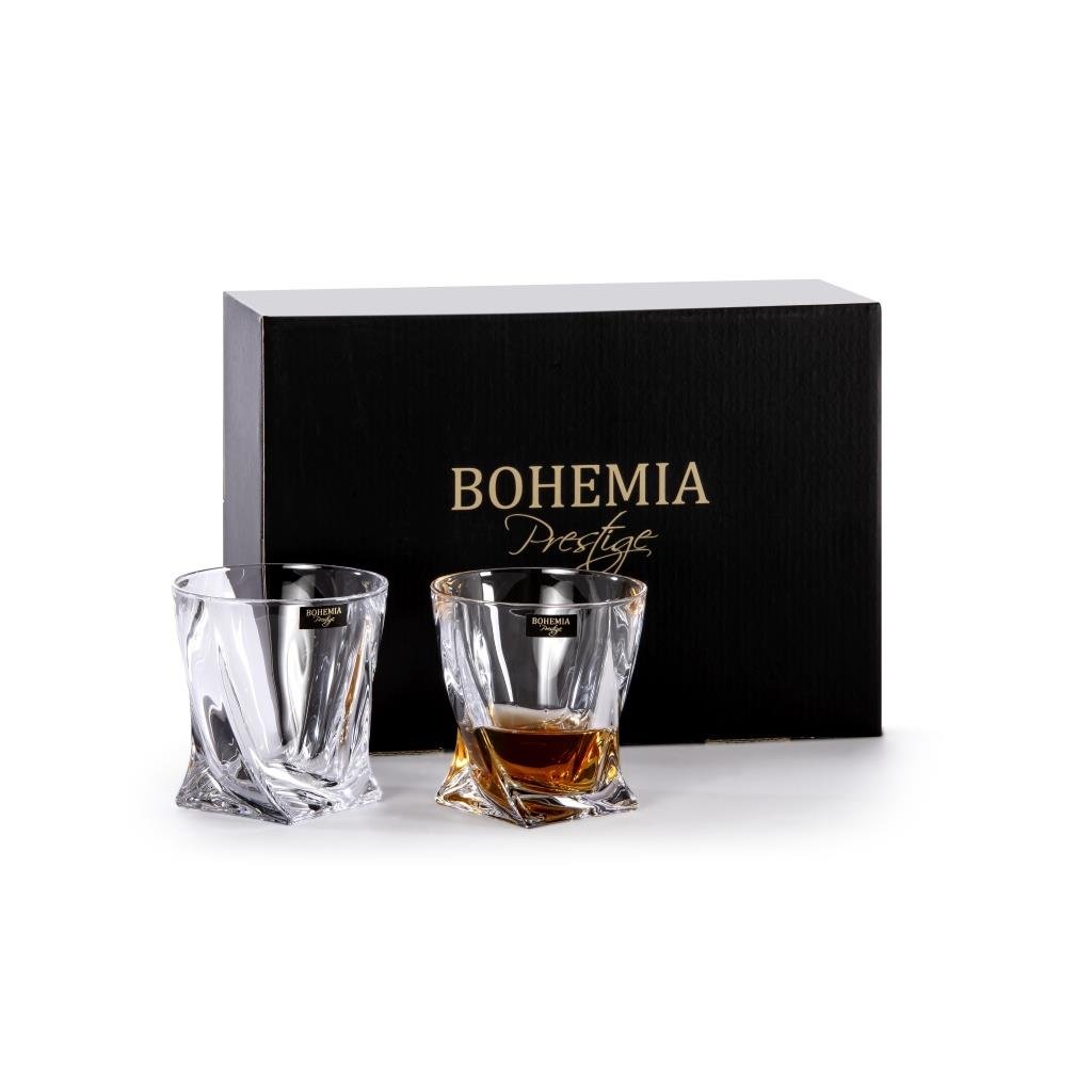 Sada whisky sklenic BOHEMIA PRESTIGE QUADRO PREMIUM představuje spojení luxusu, kvality a jedinečného designu. Šestice sklenic z prémiového křišťálu je uložena v elegantním černém dárkovém balení se zlatým logem, které potěší každého milovníka kvalitního pití.