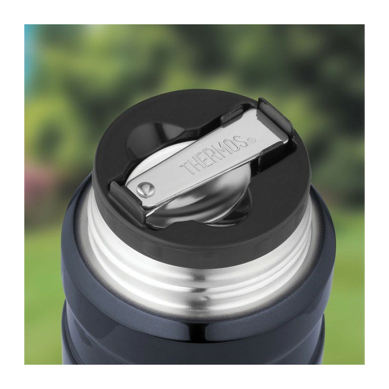 Termoska je vybavena širokým hrdlem, které usnadňuje plnění, nabírání i čištění. Součástí je praktická skládací lžíce se dvěma klouby, která se ve složeném stavu pohodlně uloží do vybrání v uzávěru. Izolovaný šálek s nerezovým vnějším povrchem a plastovým vnitřkem zvyšuje komfort používání.