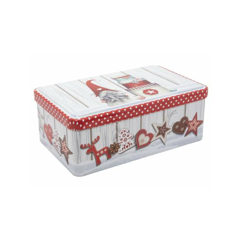 Vytvořte doma kouzelnou vánoční atmosféru s plechovou dózou SKŘÍTEK o rozměrech 18 × 11 × 7 cm. Stylová kovová krabička s motivem roztomilého vánočního skřítka je ideální na skladování cukroví, sušenek, perníčků, drobných sladkostí, ale také čajů, ořechů či malých dárků.