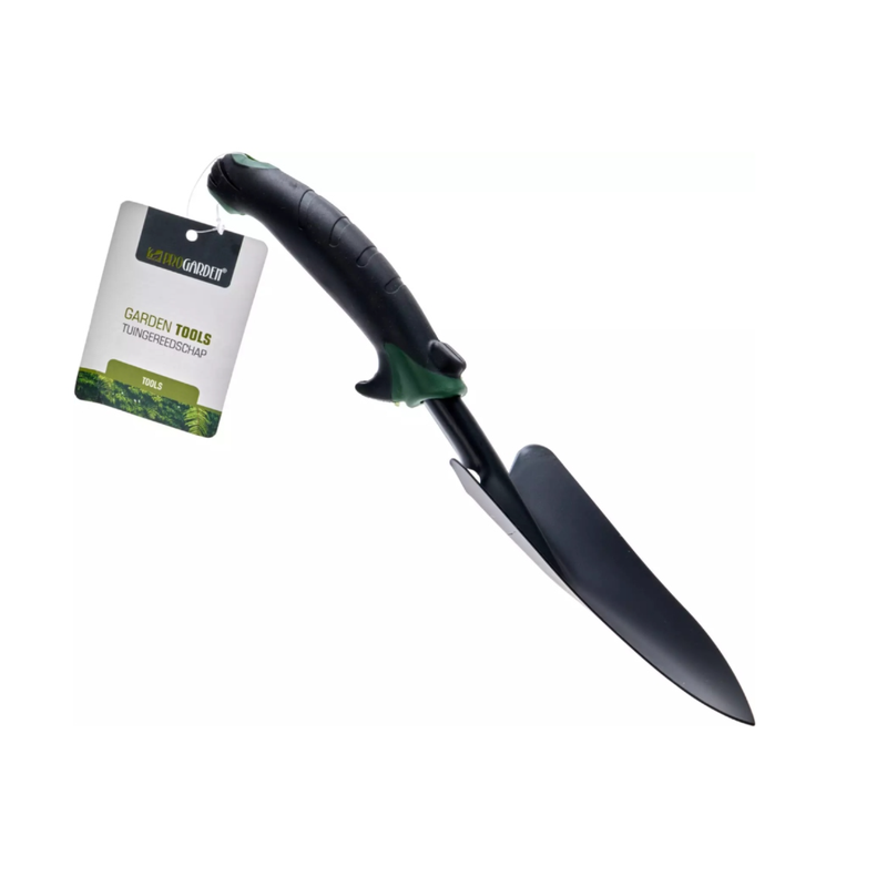 Zahradní lopatka GARDEN 35 cm, černá je praktická úzká ruční lopatka, která by neměla chybět ve výbavě žádného zahradníka – ať už jste začátečník, nebo zkušený pěstitel. Díky své konstrukci je ideální pro výsadbu, přesazování, plenění, práci v květináčích i záhonech.